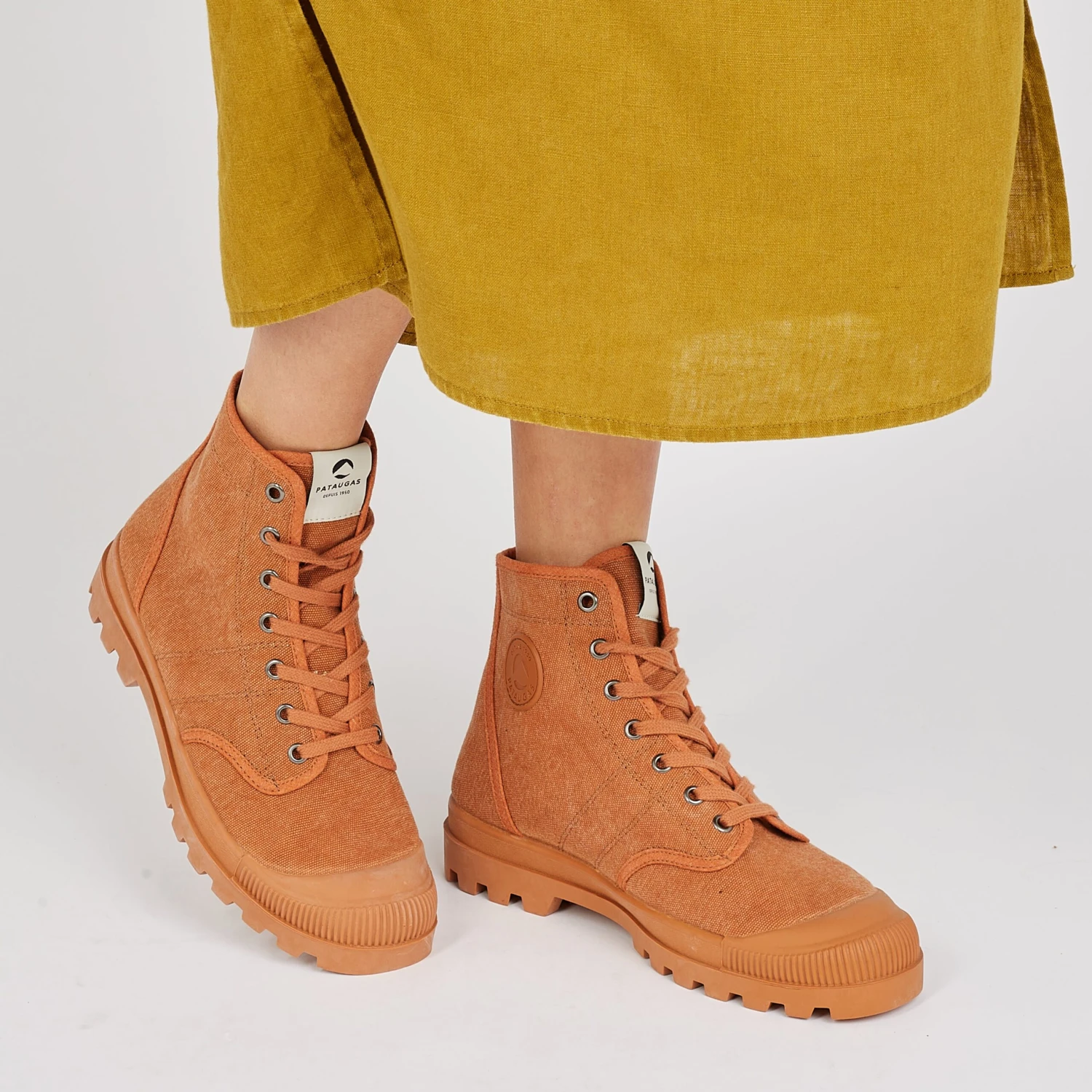 L’iconique brodequin de toile, conçue dans nos ateliers en Espagne, se joue en monochrome cette saison. Accordez vos tenues grâce à la boots femme Authentique, munie de sa toile délavée couleur brique inspirée par la technique du garment dye. Sa semelle en caoutchouc naturel monochorme lui confère un grand confort et maintien.